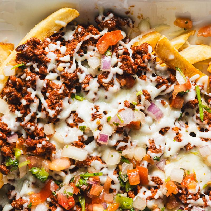 Crispy fries topped with grilled steak, melted cheese, tartar sauce, guacamole and fresh pico de gallo.
