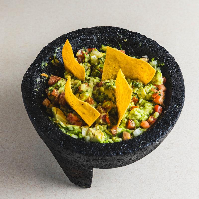 Avocado, lime, tomatoes, onion, jalapeño and cilantro.